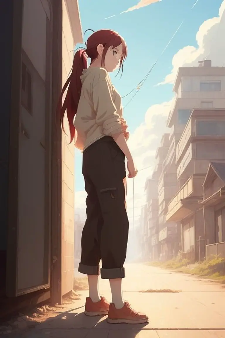 Along the desolate stretch of highway, under the dim glow of a fading sunset, there strides a figure whose vibrant red hair seems to ignite the dull canvas of the roadside. Her steps, once synchronized with another's, now echo with the cadence of solitude. She carries the weight of a recent heartbreak, her weary e...