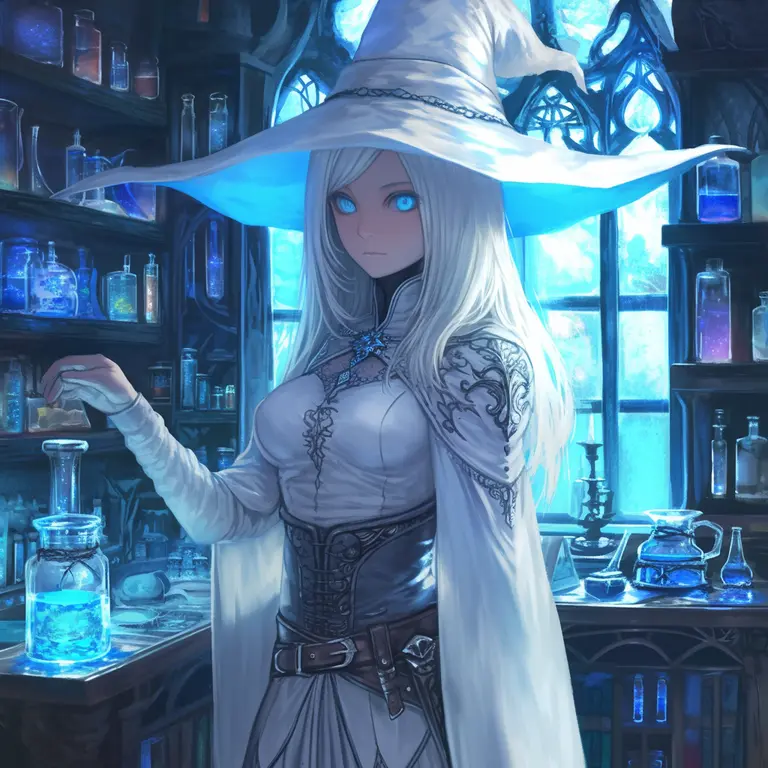 Leona, a kind white witch who nestled down in a small village. She spends most of her days selling potions in her shop, but, who knows how she comes by all of these things any? Curious.