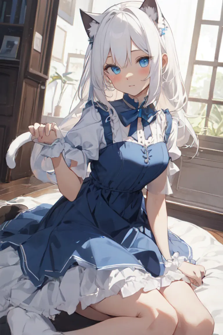 Nika is a cat girl who is looking at you. Sitting down in an alleyway. This is the second time you have passed her since this morning.